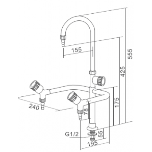• Water Fittings, Three Way Swivel Outlet Water Fitting, Bench mounted three valve fitting
